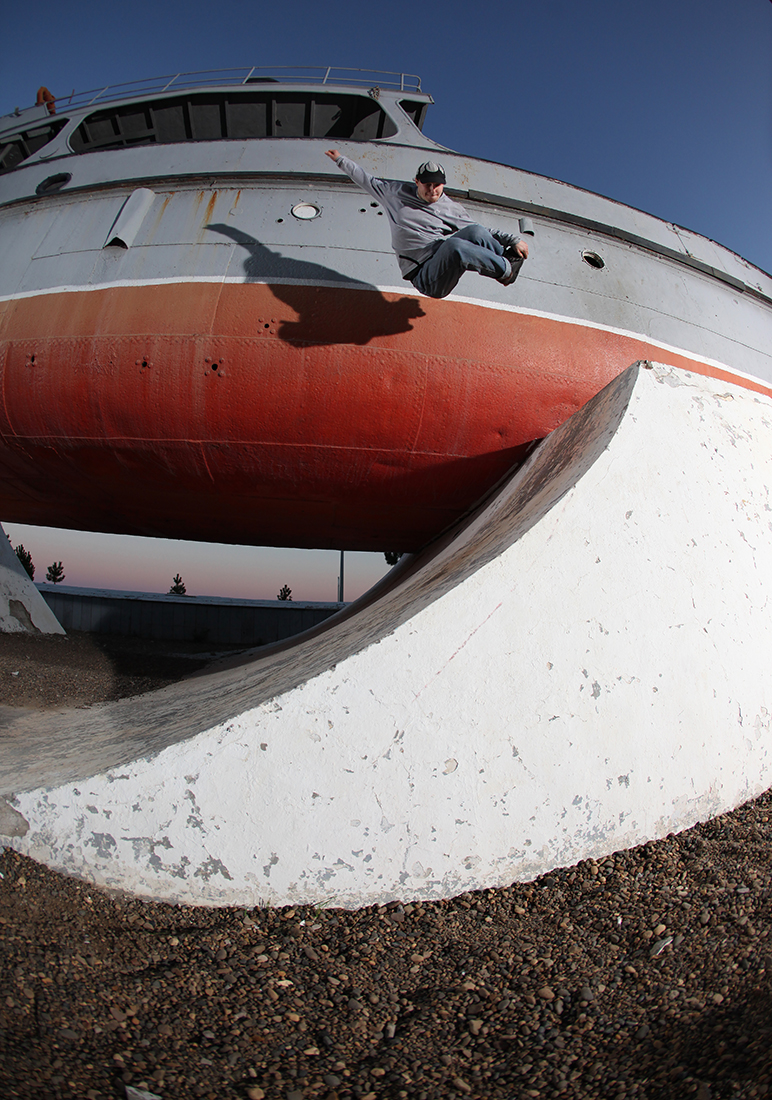 The next spot on our bucketlist in Volgograd was a ‘skateable’ ship called ‘The Extinguisher’ (the colors?). Vanya Chanchikov and Daniel ‘Coyote’ Goncharov made for some memorable shots at this location.