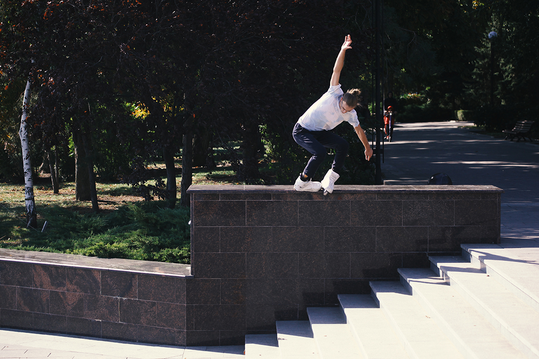 The first skate day was kicked off by Vova Turkin lacing a phat backside royale on a white kink ledge. After some bangers by Vova and Evgeny Leonov, we headed to a local spot called “Balls” (because of a nearby statue where you can clearly see a horse’s balls – such a classic street spot naming). The rest of the day was chill with an evening ledge session, handing out beers for the best tricks.