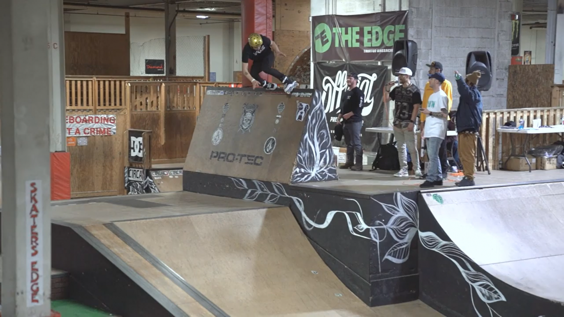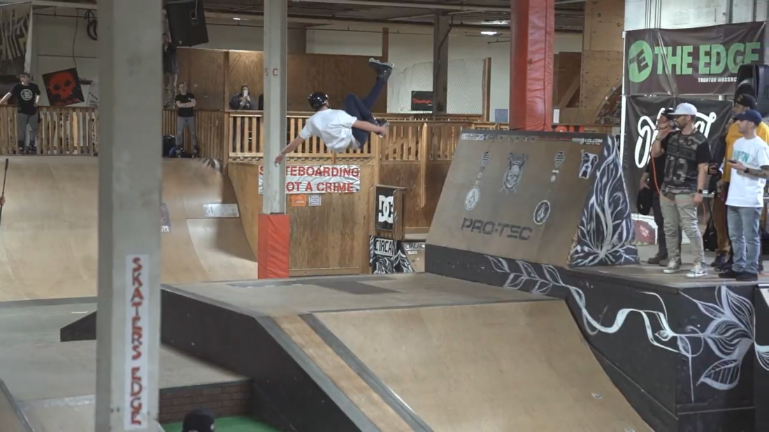 Eric Michael continued his epic streak of slaying any park in his path and put on an absolute beating on Skater’s Edge skatepark. Eric‘s tricks were so diverse and showed tons of amplitude such as his corkscrew 900s, a nasty alley oop fishbrain up against an intimidating metal pillar and also a wild disaster front flip to soul grind. Eric made the most intimidating gaps and obstacles in the park look like light work and spun, flipped and slid his way onto the throne and was crowned the new King of the North.