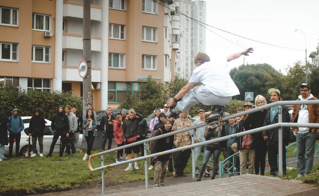 After that, we encountered rain on the final spot which despite the tradition of using new spots, had to be used again (these rails were already skated in 2014 at “The Devil’s Dozen,” Kirill Galushko won that year). Despite the disgusting conditions, the blader community showed real solidarity, and the light of mobile phones helped riders realize their plans in the rapidly approaching darkness.