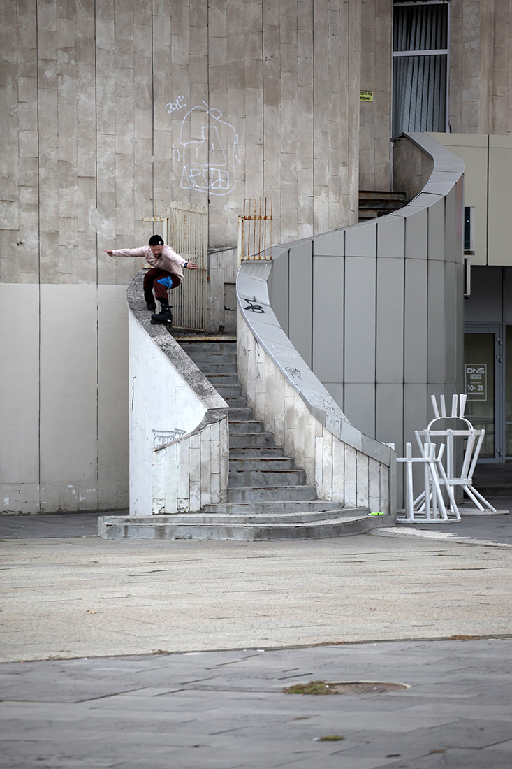 The first skate day was kicked off by Vova Turkin lacing a phat backside royale on a white kink ledge. After some bangers by Vova and Evgeny Leonov, we headed to a local spot called “Balls” (because of a nearby statue where you can clearly see a horse’s balls – such a classic street spot naming). The rest of the day was chill with an evening ledge session, handing out beers for the best tricks.